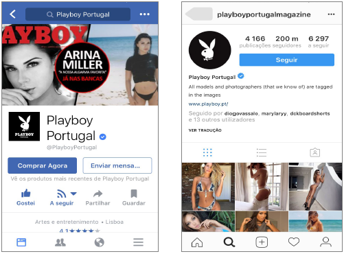 Em média existem 4 inserções de novos conteúdos diários no site da Playboy Portugal, replicados nas redes sociais da marca (Facebook, Vimeo e Instagram) e na newsletter.